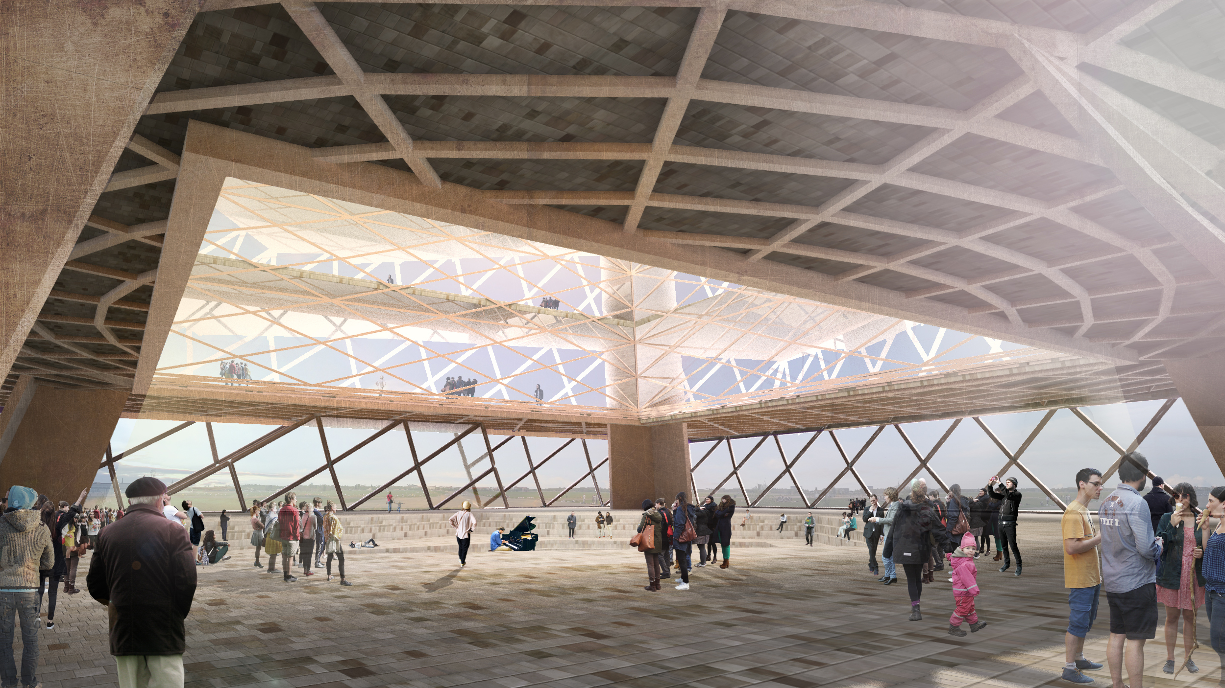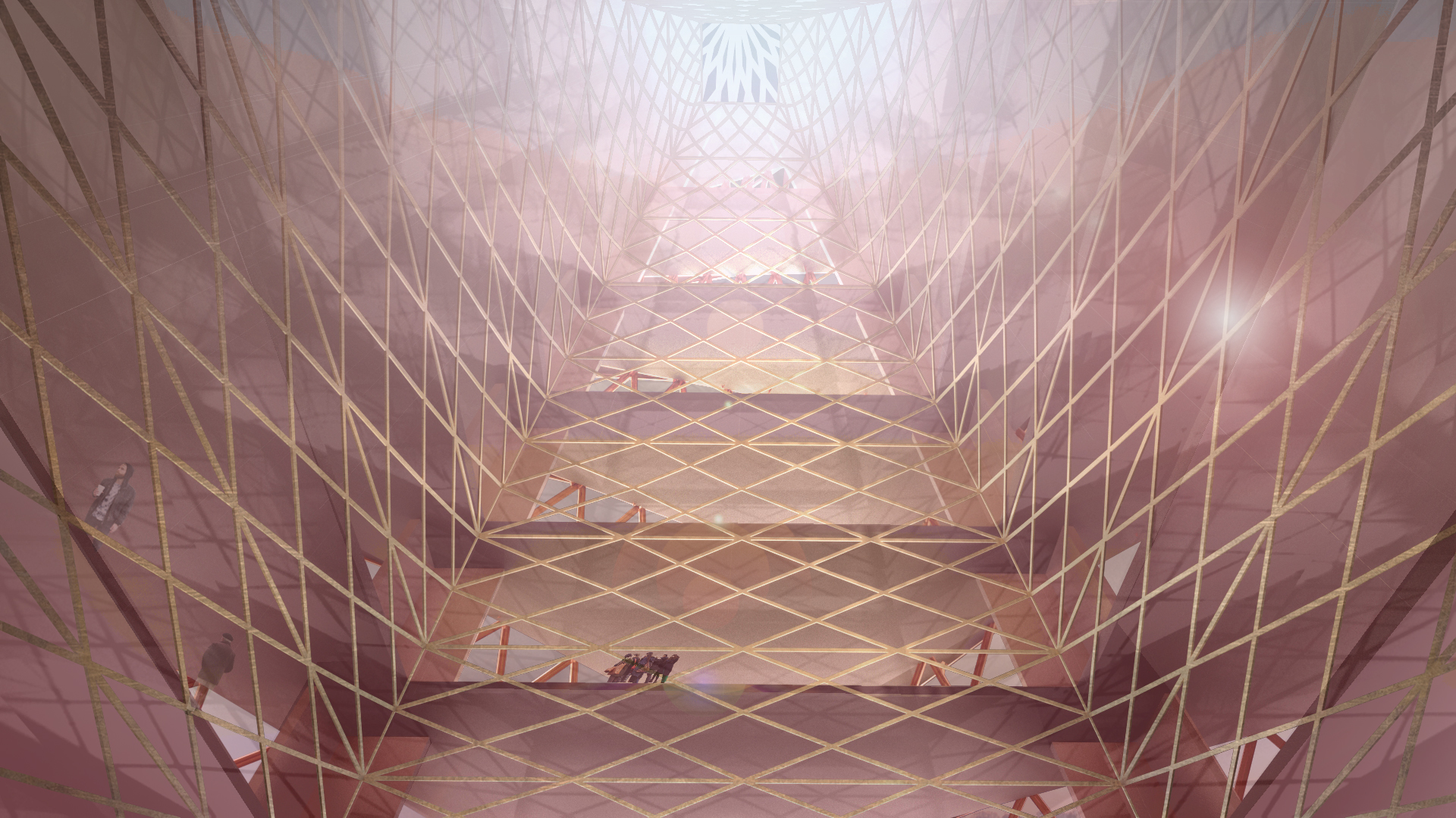 Als Modell wurde eine Pyramide gewählt. Die Drehung der Pyramidensegmente stellt den permanenten Fortschritt dar. Die Halle in der Basis dient der Öffentlichkeit als Raum für Begegnung, Gespräche, Vorträge, Präsentationen, …